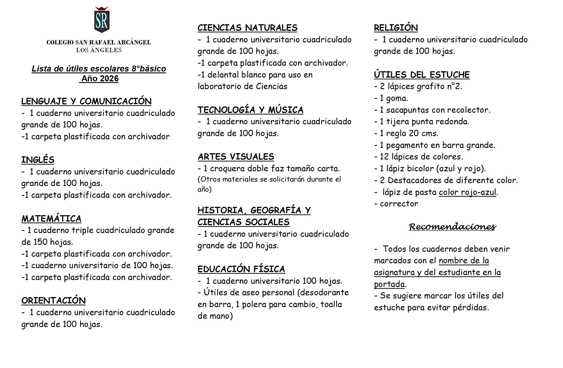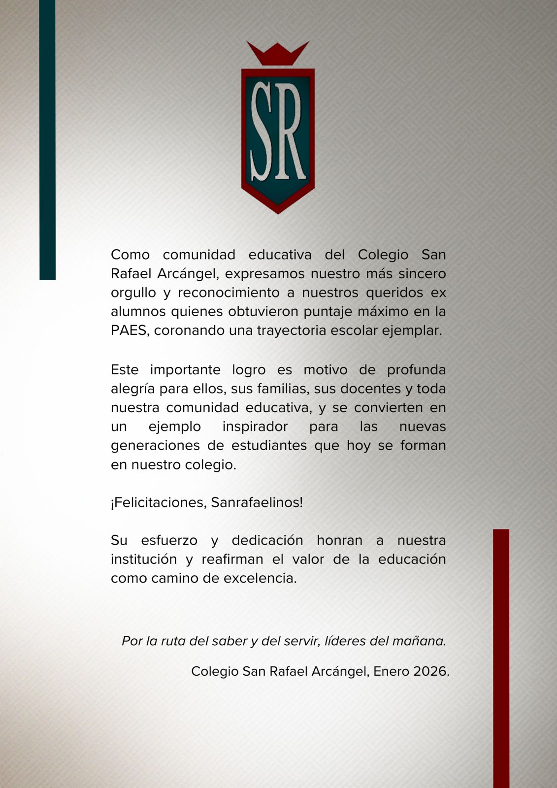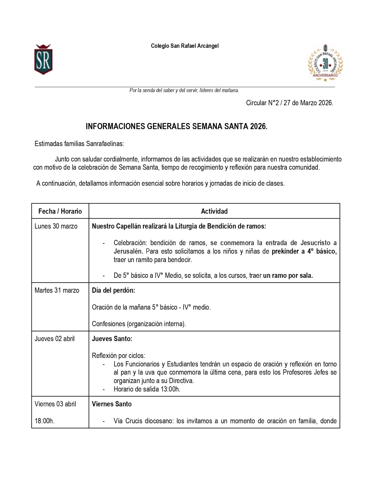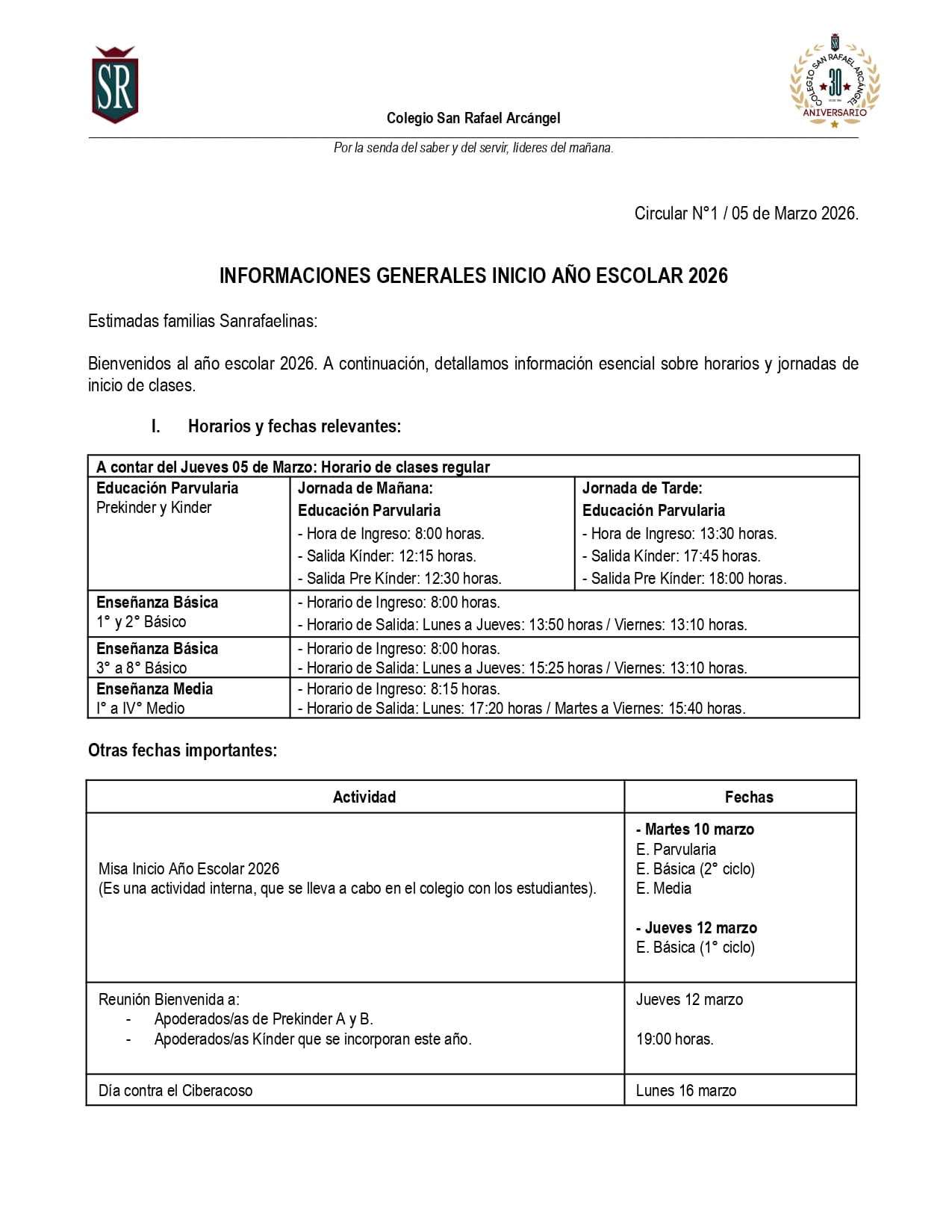 Estimadas familias Sanrafaelinas: