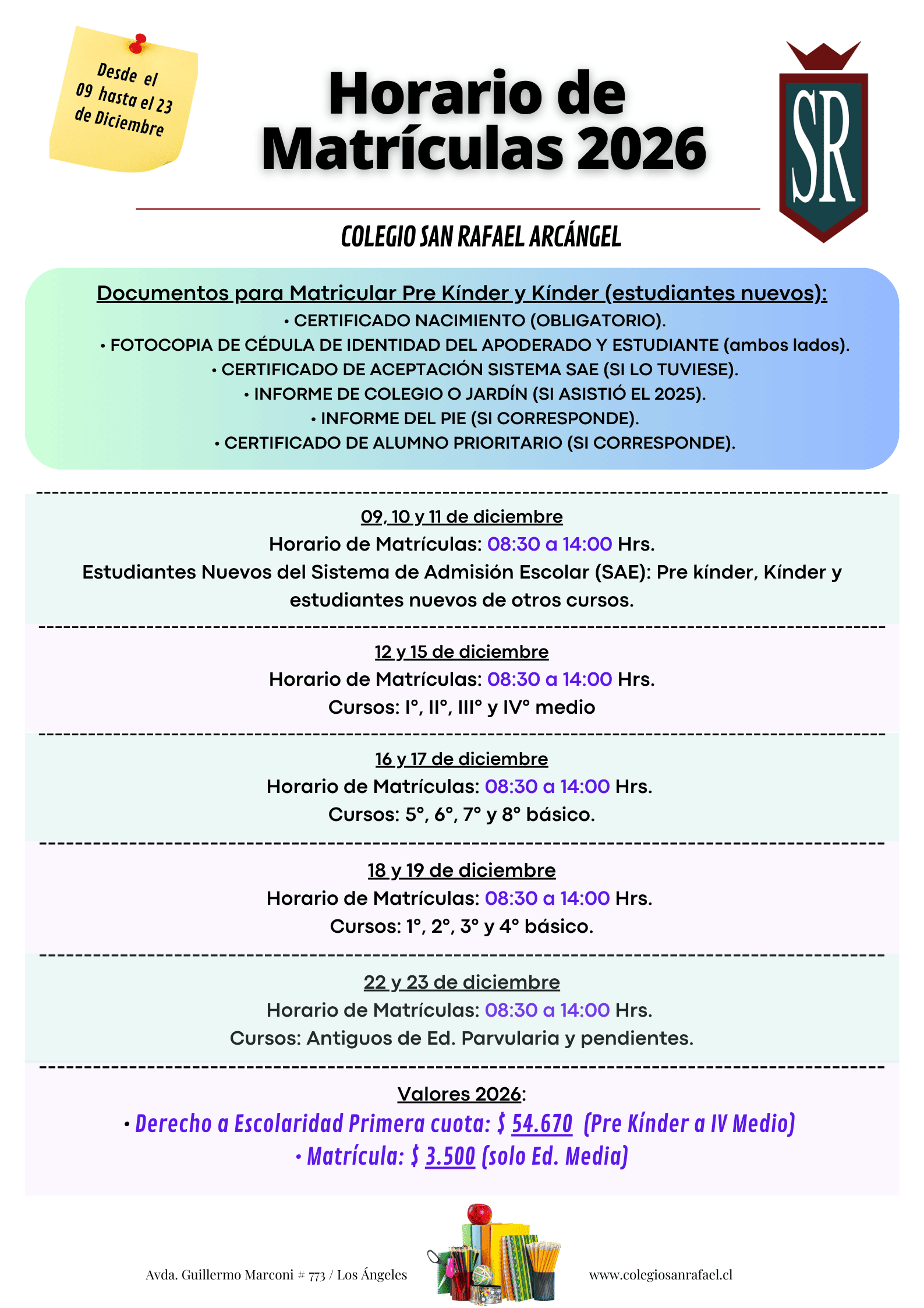 Información sobre el proceso de matrícula 2026, compromisos económicos y continuidad escolar.